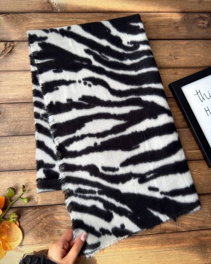 شال موهر وارداتی ۴طرف ریش طرح زبرا کد 60104