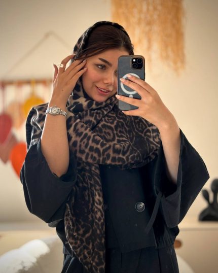 روسری وارداتی موهر طرح پلنگی قواره ۱۴۰ کد 61101