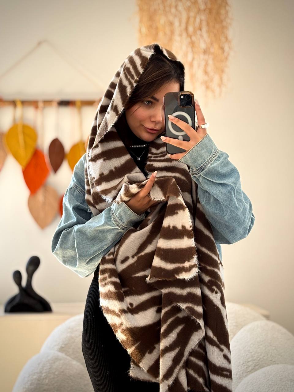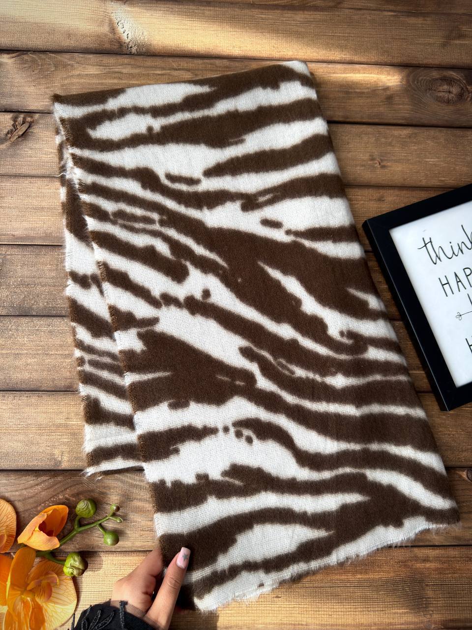 شال موهر وارداتی ۴طرف ریش طرح زبرا کد 60104